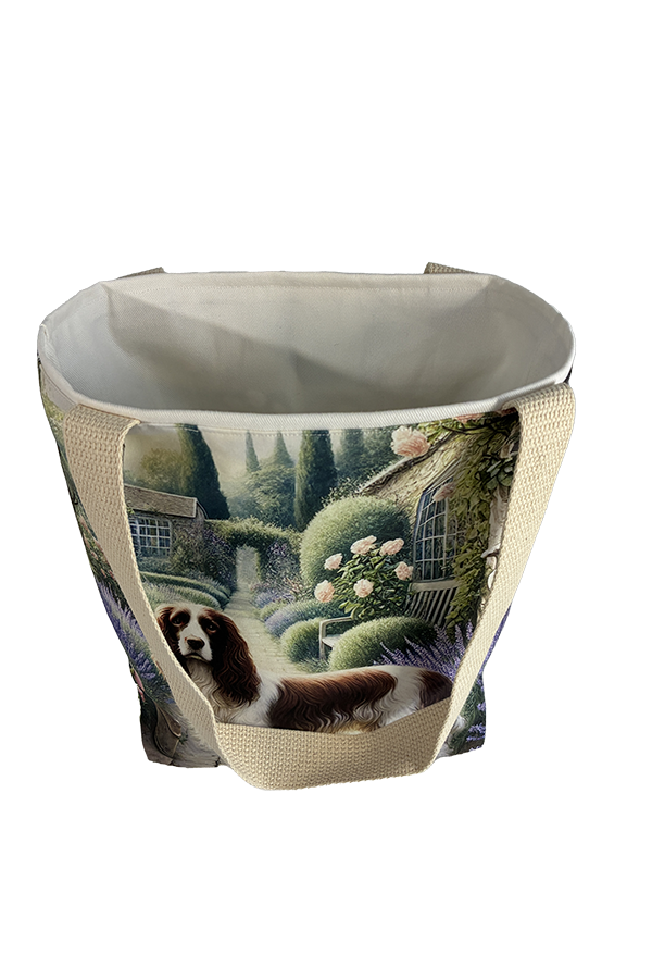 But beauty is not merely skin-deep. This Handmade Designer Springer Spaniel Garden Tote Bag boasts functionality as impressive as its aesthetics. The exterior fabric, carefully selected for its durability and resilience, keeps your belongings secure and protected during your travels.