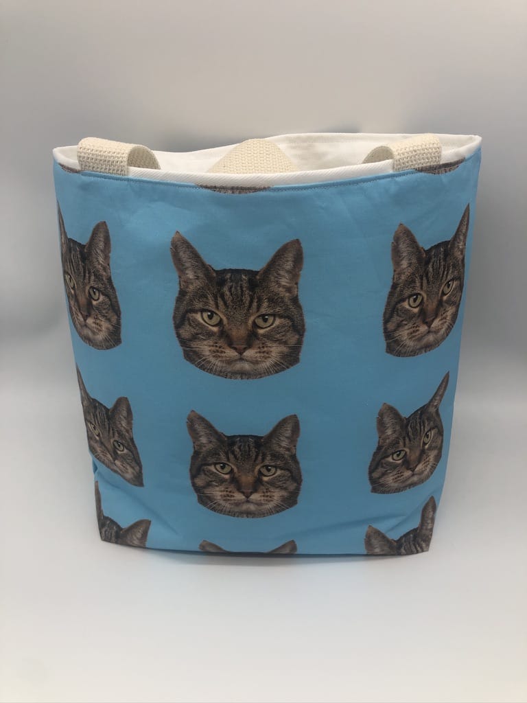Introducing our exquisite Handmade Designer Tabby #2 Blue Tote Bag, a perfect blend of artistry, quality, and functionality. This tote is designed for those who appreciate the finer details in life and have a soft spot for feline charm. Each bag is a labor of love, handcrafted to ensure the highest standards of quality and uniqueness. This designer tote bag is crafted from all-cotton designer fabric, featuring an elegant and whimsical cat-themed print. The fabric showcases a variety of adorable cat illustrations in playful and relaxed poses, artfully rendered to capture the unique personalities of our beloved feline friends. The vibrant colors and intricate details of the print make this tote a standout accessory, sure to turn heads wherever you go. The interior of This Handmade Designer Tabby #2 Blue Tote Tote Bag is lined with heavy cotton twill, providing a robust and durable foundation that maintains the bag’s shape and integrity. This high-quality lining not only adds to the bag’s durability but also offers a soft, luxurious feel, ensuring your belongings are well-protected. The tote bag features one-and-one-half-inch wide natural cotton straps, designed for both comfort and strength. These sturdy straps ensure that you can carry heavier loads with ease, distributing weight evenly across your shoulder. The natural cotton material is gentle on the skin and complements the overall aesthetic of the bag, adding a touch of organic charm. Measuring 14 x 16 inches, this Handmade Designer Tabby #2 Blue Tote Bag offers ample space for all your essentials. The large main compartment is perfect for carrying books, groceries, or a laptop. This Handmade Designer Tabby #2 Blue Tote Bag is as versatile as it is stylish. Its sophisticated design and high-quality materials make it suitable for a variety of occasions, from casual outings to more formal events. Pair it with your everyday outfits for a touch of whimsical elegance, or use it as a statement piece to express your love for cats. In summary, our Cat-Themed Handmade Designer Tabby #2 Blue Tote Bag is a perfect blend of style, quality, and functionality. It’s an ideal accessory for anyone looking to add a touch of feline grace to their daily routine. Embrace the joy of handmade craftsmanship and carry your essentials in a tote that reflects your unique personality and love for cats. Another product that would complement this tote bag is the Superdog #1 Dog Scarf.. If you would like. Click here to visit my Etsy Store.