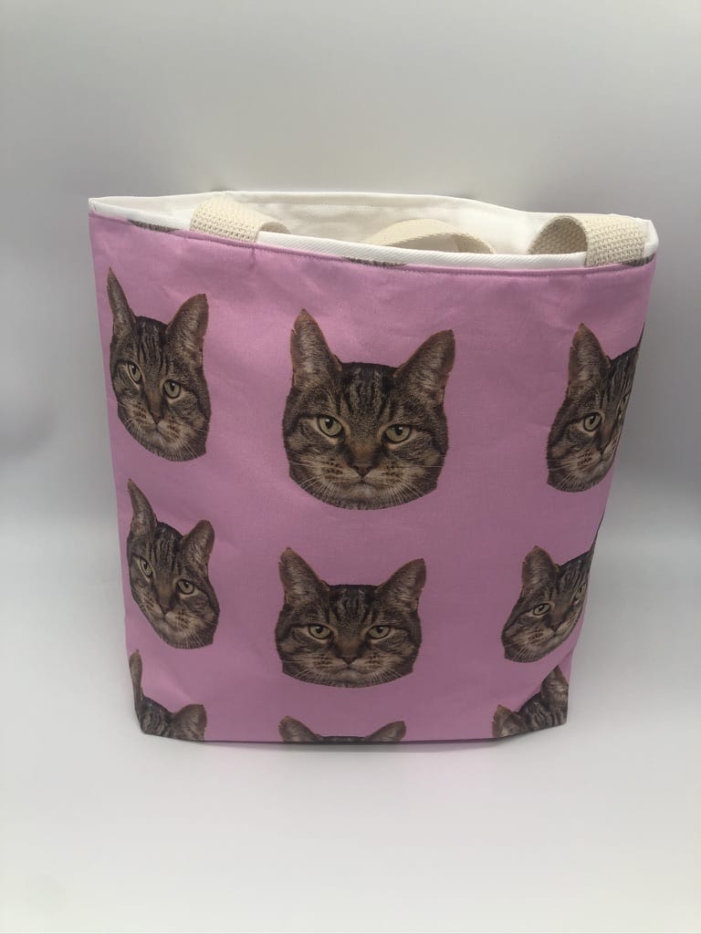 Introducing our exquisite Handmade Designer Tabby #2 Pink Tote Bag, a perfect blend of artistry, quality, and functionality. This tote is designed for those who appreciate the finer details in life and have a soft spot for feline charm. Each bag is a labor of love, handcrafted to ensure the highest standards of quality and uniqueness. This designer tote bag is crafted from all-cotton designer fabric, featuring an elegant and whimsical cat-themed print. The fabric showcases a variety of adorable cat illustrations in playful and relaxed poses, artfully rendered to capture the unique personalities of our beloved feline friends. The vibrant colors and intricate details of the print make this tote a standout accessory, sure to turn heads wherever you go. The interior of This Handmade Designer Tabby #2 Pink Tote Bag is lined with heavy cotton twill, providing a robust and durable foundation that maintains the bag’s shape and integrity. This high-quality lining not only adds to the bag’s durability but also offers a soft, luxurious feel, ensuring your belongings are well-protected. The tote bag features one-and-one-half-inch wide natural cotton straps, designed for both comfort and strength. These sturdy straps ensure that you can carry heavier loads with ease, distributing weight evenly across your shoulder. The natural cotton material is gentle on the skin and complements the overall aesthetic of the bag, adding a touch of organic charm. Measuring 14 x 16 inches, this Handmade Designer Tabby #2 Pink Tote Bag offers ample space for all your essentials. The large main compartment is perfect for carrying books, groceries, or a laptop. This Handmade Designer Tabby #2 Pink Tote Bag is as versatile as it is stylish. Its sophisticated design and high-quality materials make it suitable for a variety of occasions, from casual outings to more formal events. Pair it with your everyday outfits for a touch of whimsical elegance, or use it as a statement piece to express your love for cats. In summary, our Cat-Themed Handmade Designer Tabby #2 Pink Tote Bag is a perfect blend of style, quality, and functionality. It’s an ideal accessory for anyone looking to add a touch of feline grace to their daily routine. Embrace the joy of handmade craftsmanship and carry your essentials in a tote that reflects your unique personality and love for cats. Another product that would complement this tote bag is the Superdog #1 Dog Scarf.. If you would like. Click here to visit my Etsy Store.