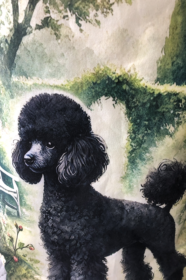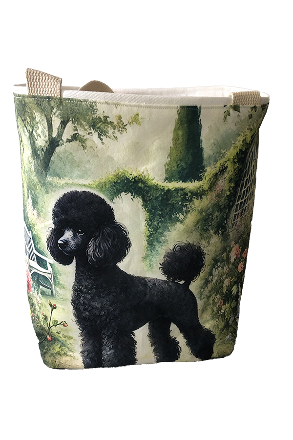 Introducing the epitome of canine elegance and artisan craftsmanship: the Handmade Designer Poodle Toy/Black Garden Tote Bag. Standing proud at 14 inches tall and stretching 16 inches wide, this exquisite accessory is a tribute to functionality and style. Crafted with meticulous attention to detail, it will become your wardrobe’s darling. At first glance, your eyes are immediately drawn to the captivating design gracing the tote’s exterior. Your pet is displayed in a beautiful scene on a durable fabric. The playful demeanor brings a touch of whimsy to the bag, making it a conversation starter wherever you go.