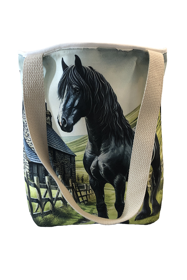 Indulge in the luxury of artisan craftsmanship and equine charm with the Handmade Designer Welsh Cob Black/Farm Tote Bag. Impeccably crafted and undeniably chic, it is more than just a bag; it’s a statement piece that celebrates the bond between humans and horses, encapsulating the joy and companionship that our majestic friends bring into our lives. Another product that would complement this tote bag is the Welsh Cob Black Cart Tote Bag. If you would, Click here to visit my Etsy Store.