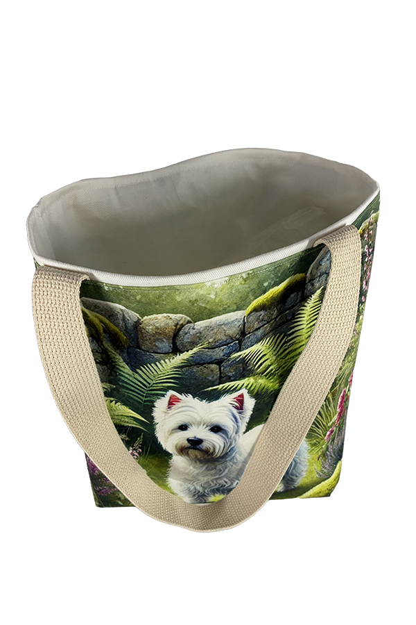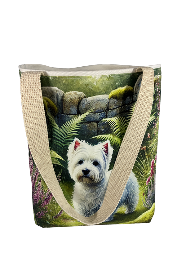 Indulge in the luxury of artisan craftsmanship and canine charm with the Handmade Designer Westie Garden Tote Bag. Impeccably crafted and undeniably chic, it is more than just a bag. It’s a statement piece that celebrates the bond between humans and hounds, encapsulating the joy and companionship that our furry friends bring into our lives. Another product that would complement this tote bag is the  West Highland Terrier Highlands Tote Bag. If you would like. Click here to visit my Etsy Store.
