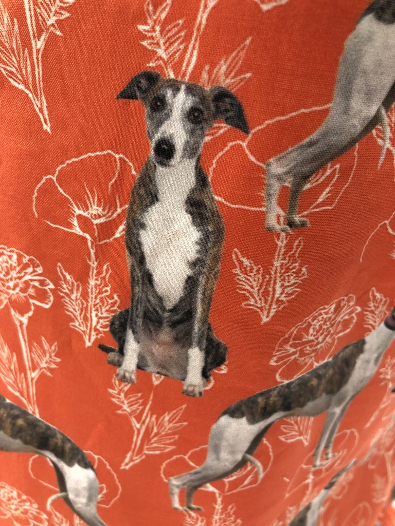 This Whippet #1 Tote Bag is handmade with Whippet-themed designer fabric and is lined with white cotton twill. At Beau Designs, I create hand-detailed products with natural tones, organic textures, and high-end materials. Another product that would compliment this Whippet #1 Tote Bag is the Thanksgiving #3 Dog Scarf.  If you would like, Click here to visit my Etsy store.