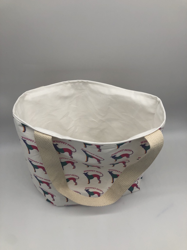 This Whippet Mom Tote Bag is handmade with Whippet-themed designer fabric and is lined with white cotton twill.  At Beau Designs, I create hand-detailed products with natural tones, organic textures, and high-end materials.  Another product that would complement this Whippet Mom Tote Bag is the Whippet #1 Christmas Stocking.  If you would like,  Click here to visit my Etsy store.