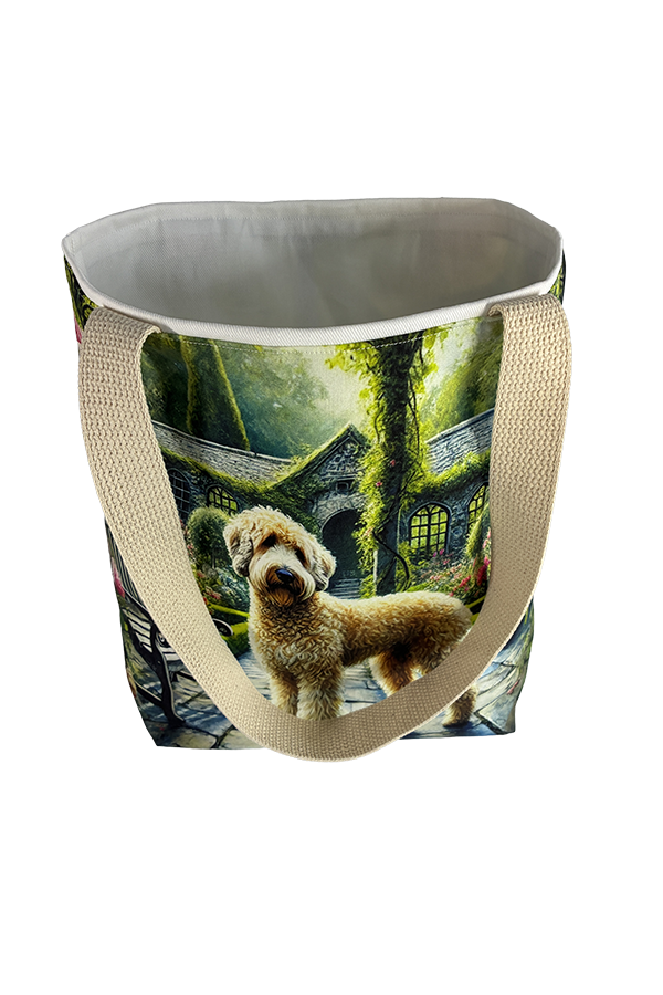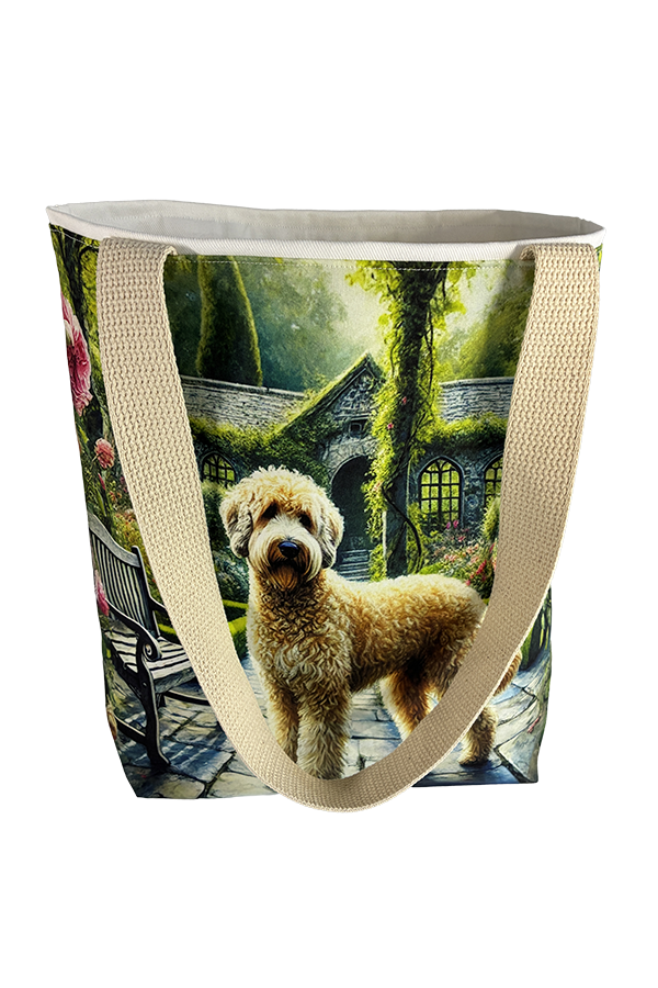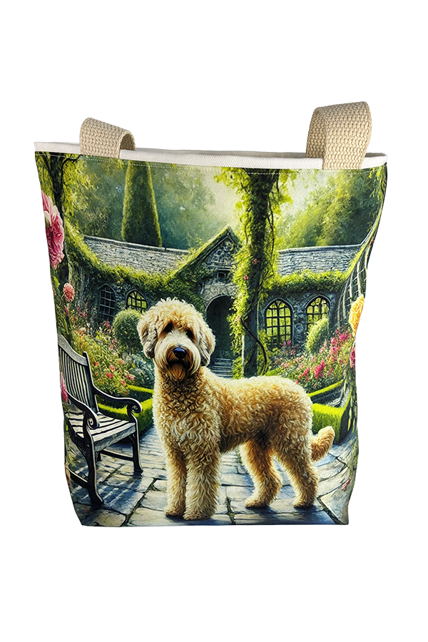 Introducing the epitome of canine elegance and artisan craftsmanship: the Handmade Designer Whoodle Garden Tote Bag. Standing proud at 14 inches tall and stretching 16 inches wide, this exquisite accessory is a tribute to functionality and style. Crafted with meticulous attention to detail, it will become your wardrobe’s darling. At first glance, your eyes are immediately drawn to the captivating design gracing the tote’s exterior. Your pet is displayed in a beautiful scene with personality and charm. Their playful demeanor brings a touch of whimsy to the bag, making it a conversation starter wherever you go.