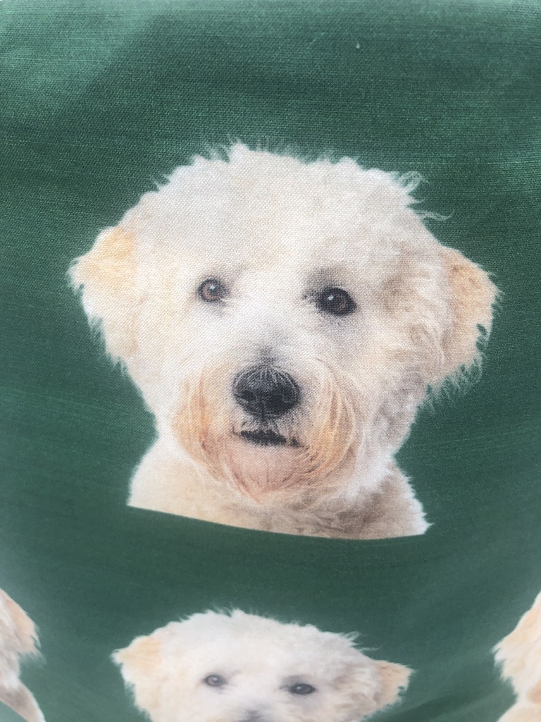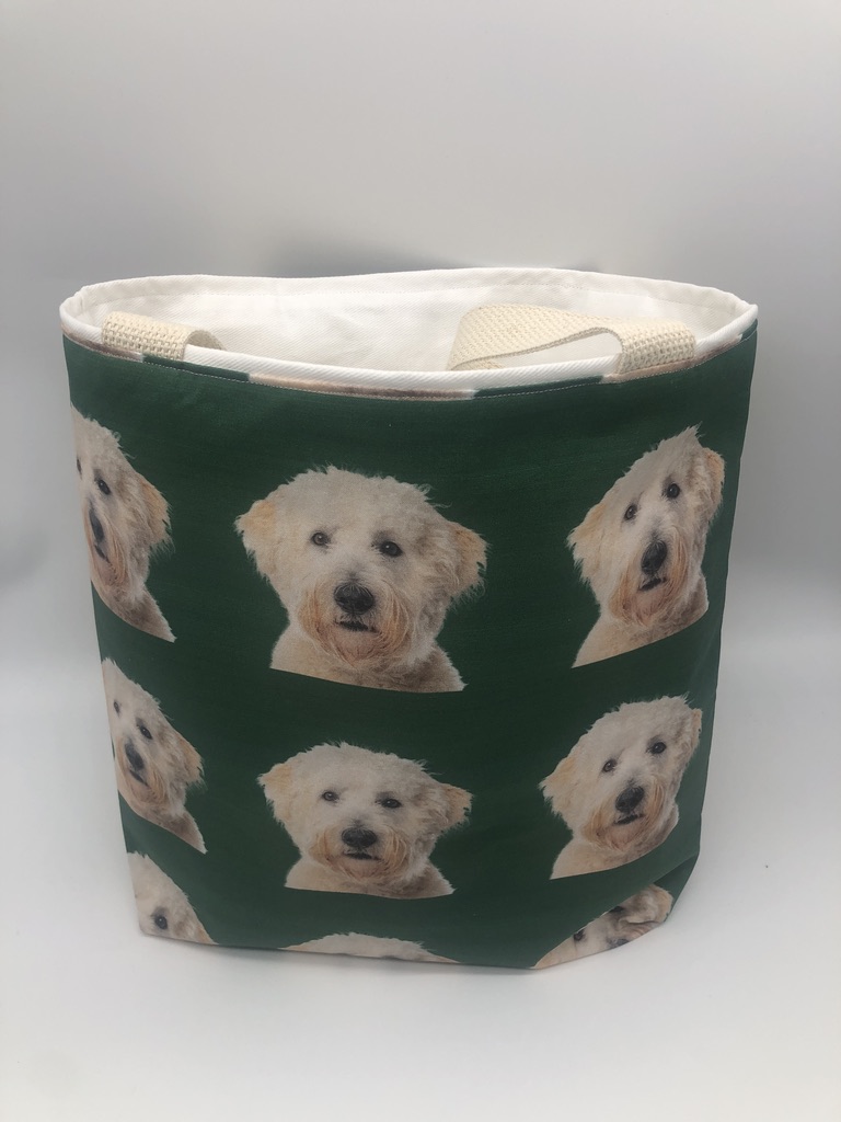 Introducing the epitome of canine elegance and artisan craftsmanship: the Handmade Designer Whoodle Green Tote Bag. Standing proud at 14 inches tall and stretching 16 inches wide, this exquisite accessory is a tribute to both functionality and style. Crafted with meticulous attention to detail, it is destined to become the darling of your wardrobe. At first glance, your eyes are immediately drawn to the captivating design gracing the exterior of the tote. Adorning the durable fabric are charming Whoodle dogs, each one infused with personality and charm. Their playful demeanor brings a touch of whimsy to the bag, making it a conversation starter wherever you go. But beauty is not merely skin-deep. This Whoodle Green tote bag boasts functionality as impressive as its aesthetics. The exterior fabric, carefully chosen for its durability and resilience, ensures that your belongings remain secure and protected during your travels. Meanwhile, the spacious interior, lined with 100 percent cotton white twill, provides a soft and luxurious sanctuary for your essentials. As your fingers trace the contours of the bag, you’ll appreciate the thoughtful details woven into its construction. The one and one-half-inch-wide natural cotton strap, meticulously stitched to perfection, offers both comfort and durability, effortlessly accommodating the weight of your belongings while adding a touch of rustic charm to the ensemble. Whether you’re running errands around town or embarking on a weekend getaway, this Whoodle Green tote bag is your steadfast companion. Its generous dimensions provide ample space for everything you need, from daily essentials to unexpected treasures discovered along the way. With each wear, it becomes not just an accessory, but an extension of your unique personality and style. Indulge in the luxury of artisan craftsmanship and canine charm with the Handmade Designer Whoodle Green Tote Bag. Impeccably crafted and undeniably chic, it is more than just a bag it’s a statement piece that celebrates the bond between human and hound, encapsulating the joy and companionship that our furry friends bring into our lives. Another product that would complement this dog scarf is the Superdog #1 Dog Scarf.. If you would like. Click here to visit my Etsy Store.