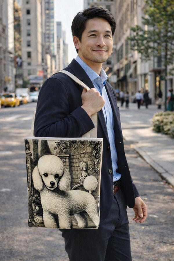 Poodle Toy/White Engraving Tote Bag