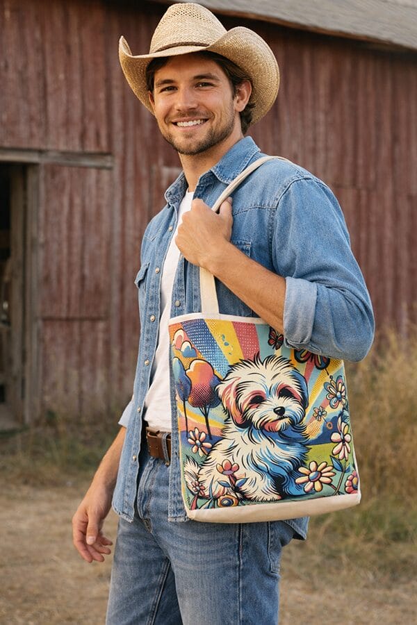 Indulge in the luxury of artisan craftsmanship and canine charm with the Handmade Designer Aussiedoodle Garden Tote Bag. Impeccably crafted and undeniably chic, it is more than just a bag. It’s a statement piece that celebrates the bond between humans and hounds, encapsulating the joy and companionship that our furry friends bring into our lives. Another product that would complement this tote bag is the Aussiedoodle Playing Tote Bag. If you would like. Click here to visit my Etsy Store.