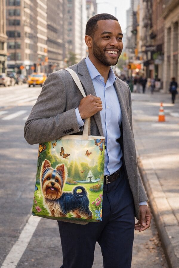 This Yorkie #2 Tote Bag is handmade with Yorkie-themed designer fabric and lined with white cotton twill. At Beau Designs, I create hand-detailed products with natural tones, organic textures, and high-end materials. Another product complimenting this Yorkie #2 Tote bag is the Yorkie #2 Squirrel Scarf. If you would like, Click here to visit my Etsy store.